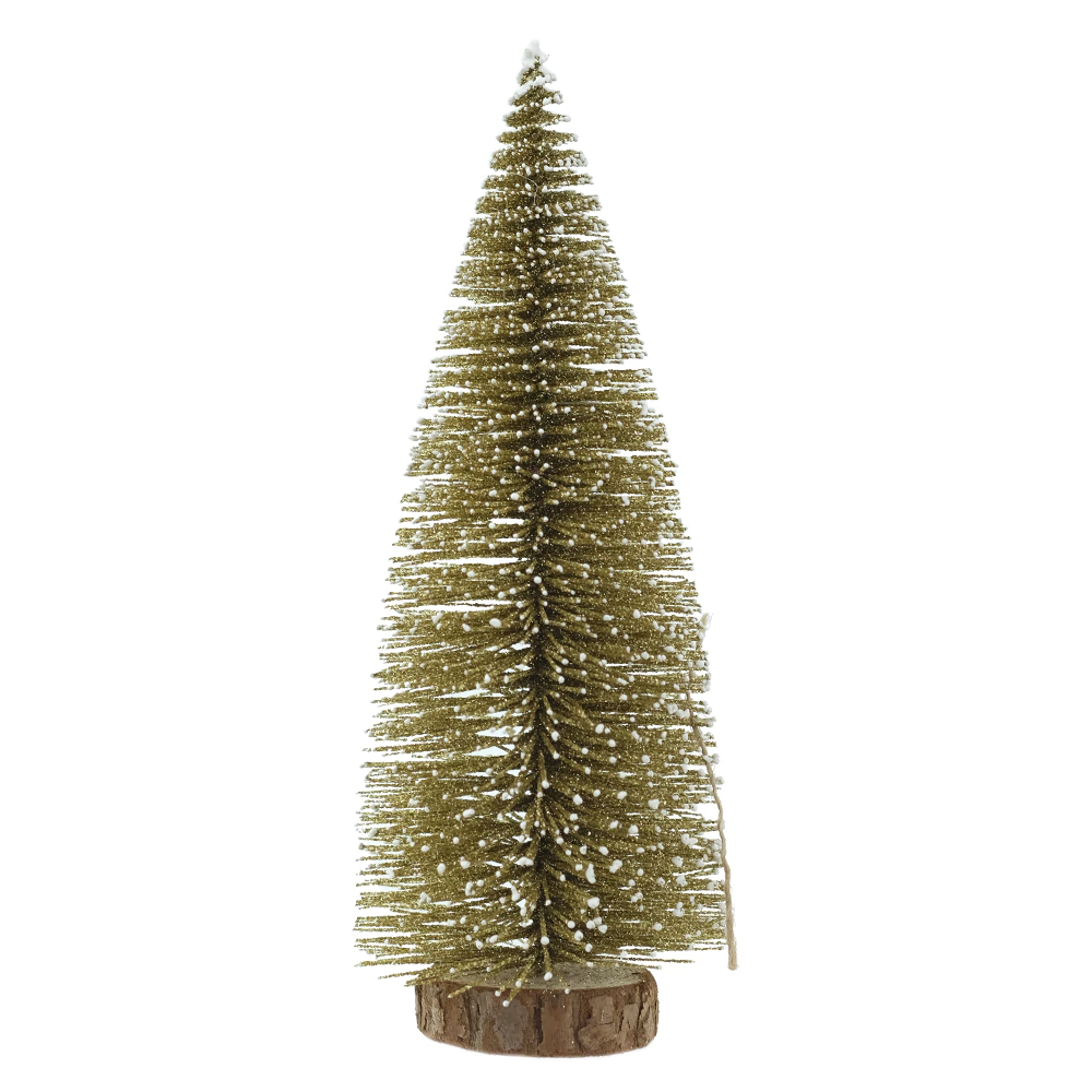 Com 20 cm de altura, o item possui uma base de madeira rústica que imita um tronco, e a árvore é coberta com um efeito de neve e glitter dourado que reflete a luz, criando um visual deslumbrante. Ideal para decorar mesas de centro, prateleiras, escritórios ou para compor uma cena natalina em miniatura, esta mini árvore traz o espírito da estação de forma sutil e charmosa.