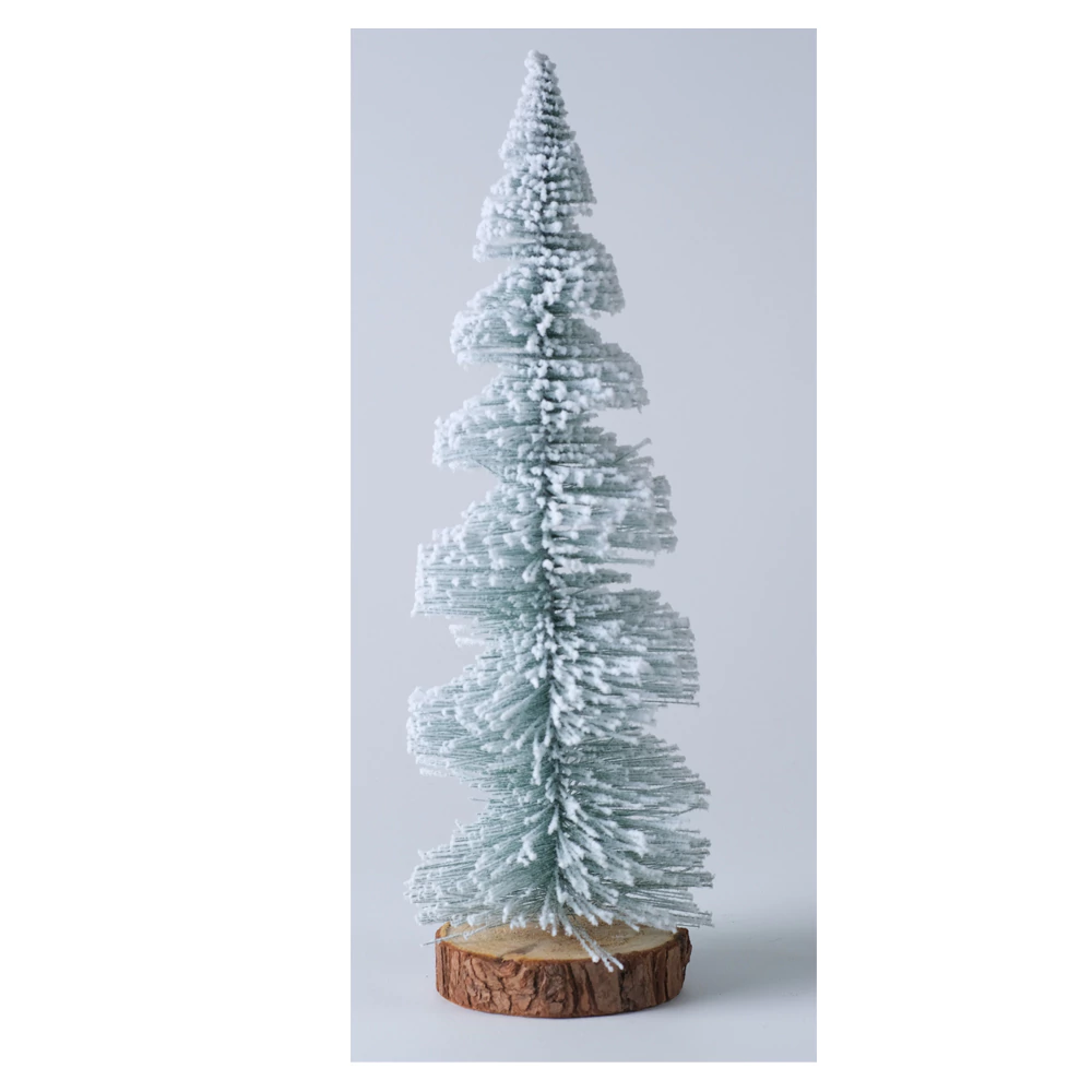 Descrição do Produto: Mini Árvore Decorativa Espiral Nevada com Base Rústica (30cm)