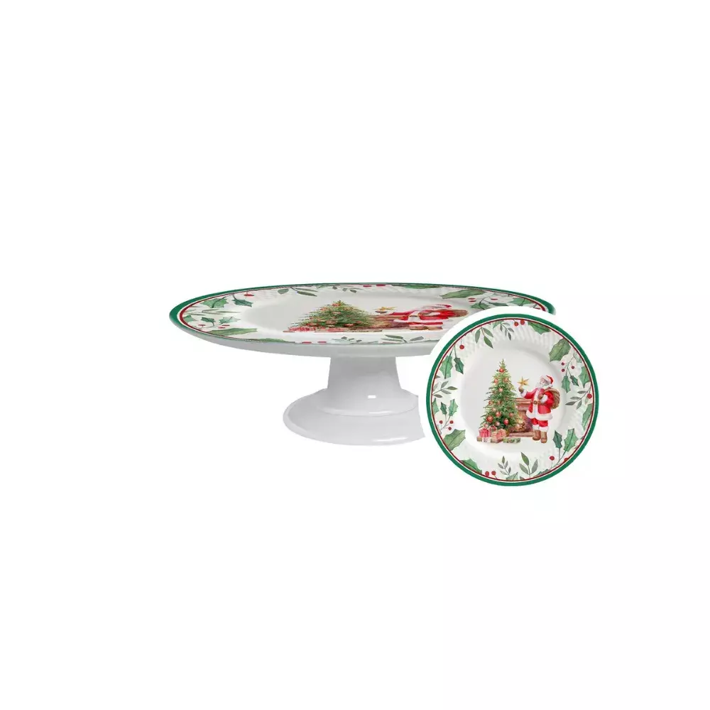 Sirva suas guloseimas e mini bolos de festa com o charme centralizado do Papai Noel usando a Mini Boleira Santa Claus. Esta peça é ideal para adicionar um toque temático e funcional à sua mesa de Natal, especialmente em espaços menores ou em mesas de doces.