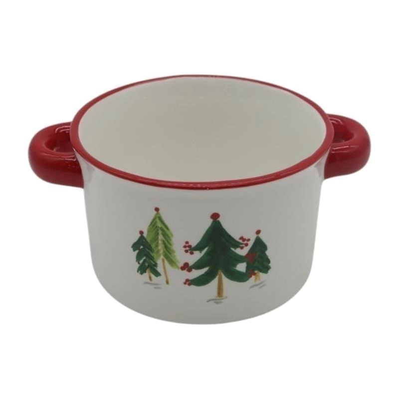Sirva porções individuais de petiscos, sopas, doces ou utilize como um encantador objeto de decoração com esta Mini Caçarola de Cerâmica com Tema Natalino. Perfeita para adicionar um toque rústico e festivo à sua mesa de Natal!