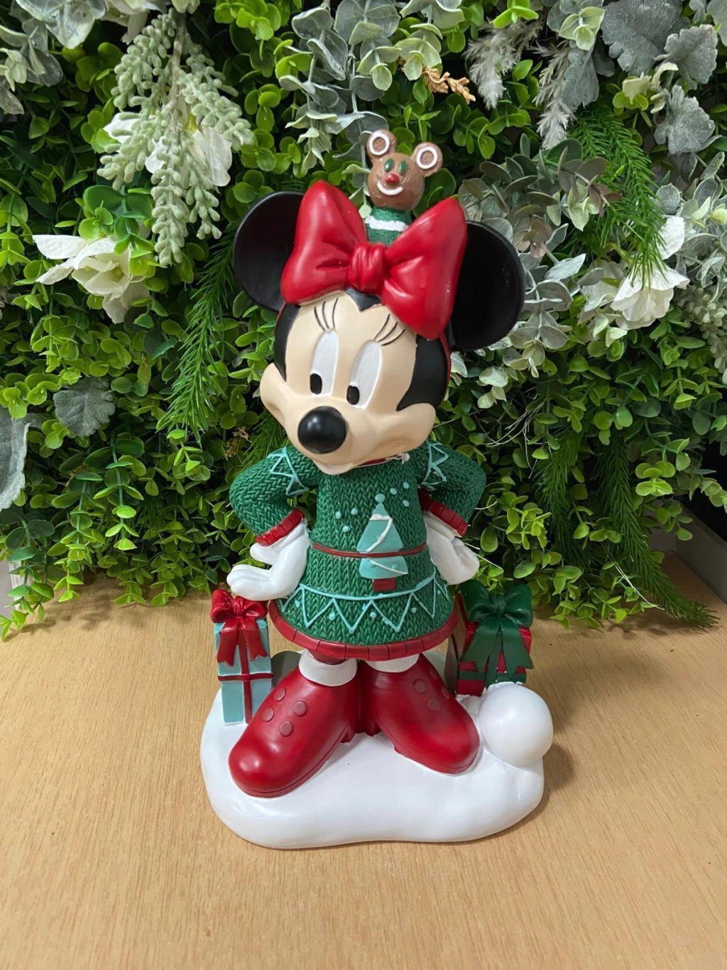 A Minnie Decorativa Natal em Resina G é uma peça cheia de charme e espírito natalino, perfeita para adicionar a magia da Disney à sua decoração.