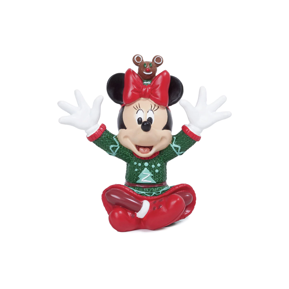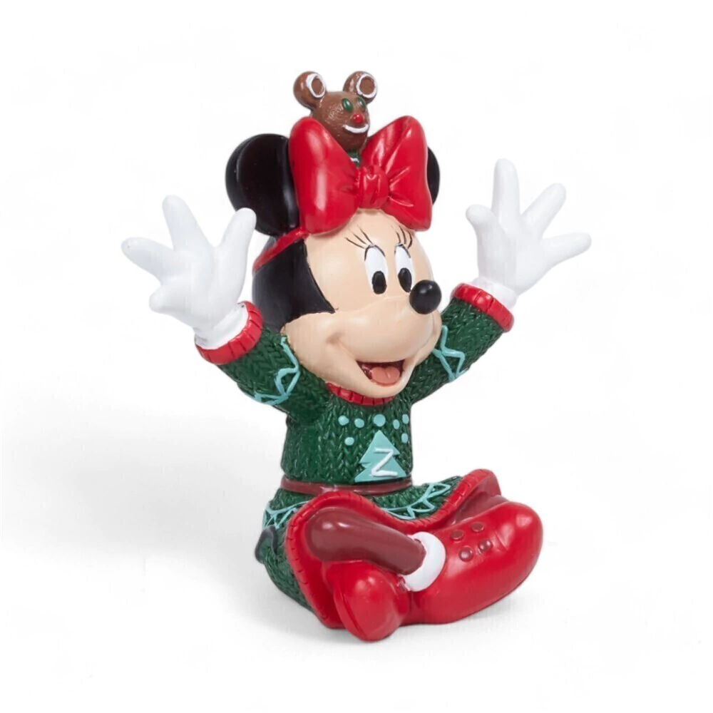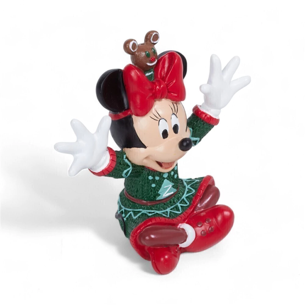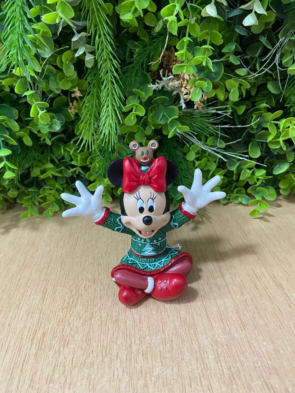 A Minnie Decorativa Natal em Resina é uma peça charmosa e cheia de espírito natalino, ideal para adicionar a magia da Disney à sua decoração. A estatueta da Minnie está em uma posição sentada e veste um detalhado suéter de Natal verde com estampa de flocos de neve e um gorro com orelhas de urso. Seu laço vermelho no topo da cabeça e os detalhes de sapato e luvas dão o toque final perfeito. Esta miniatura é ideal para enfeitar prateleiras, mesas de centro ou qualquer cantinho que precise de um toque de alegria e nostalgia.