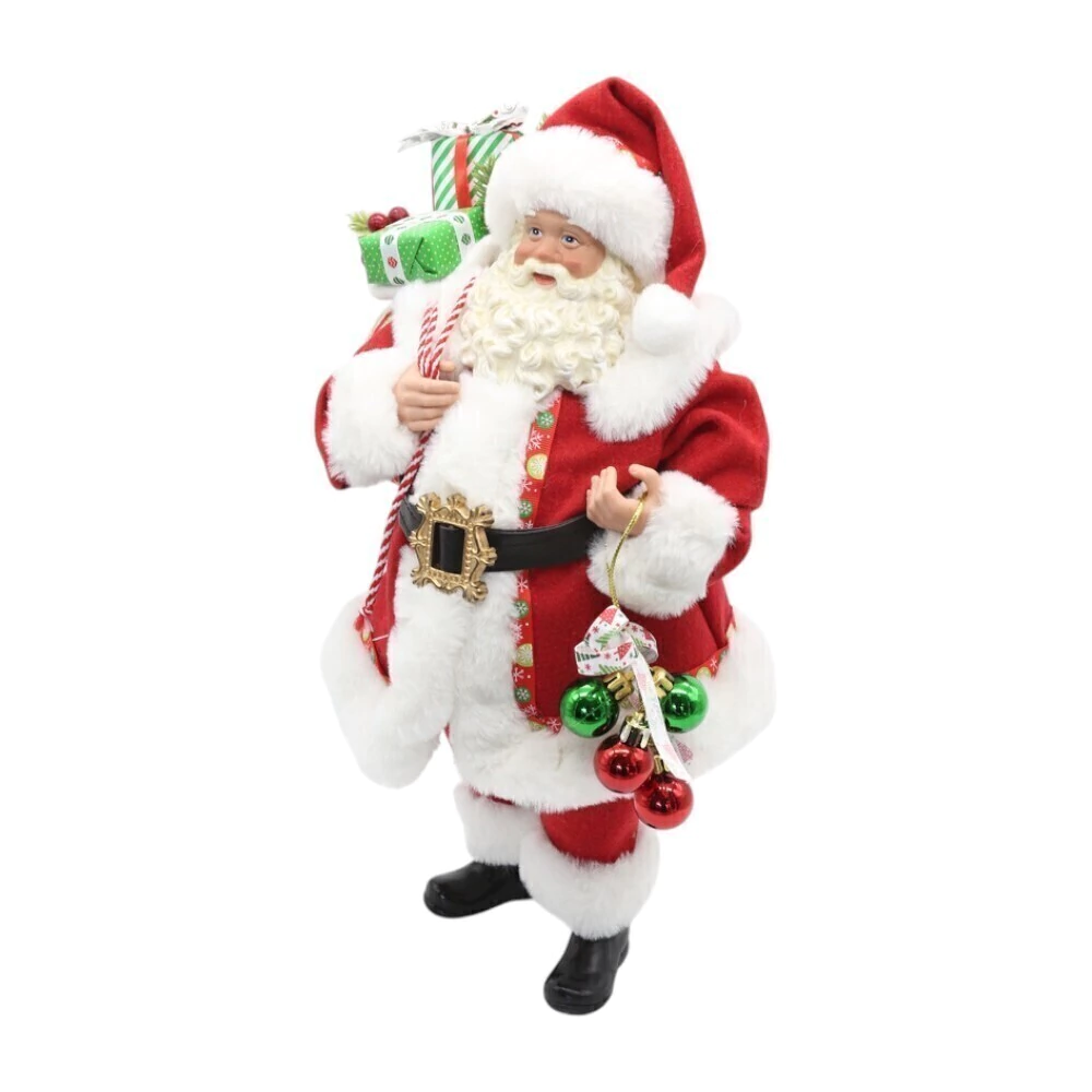 Esta imponente figura de Papai Noel de 38cm personifica a generosidade e o espírito tradicional do Natal. Com um design rico em detalhes e acabamentos luxuosos, ele é perfeito para ser o ponto focal em lareiras, mesas laterais ou aparadores.