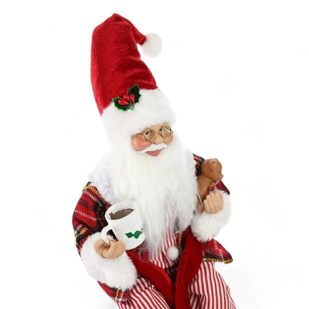 Adicione um toque de humor e conforto à sua decoração natalina com este encantador Papai Noel em Pijama e Pantufas. Com seus 30 cm de altura, esta peça captura um momento raro e divertido do Bom Velhinho, mostrando-o em um merecido dia de folga no Polo Norte.