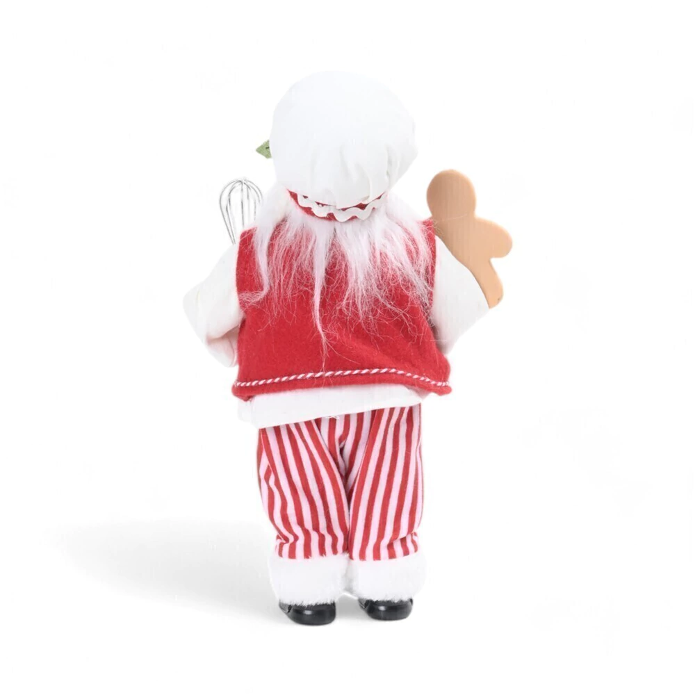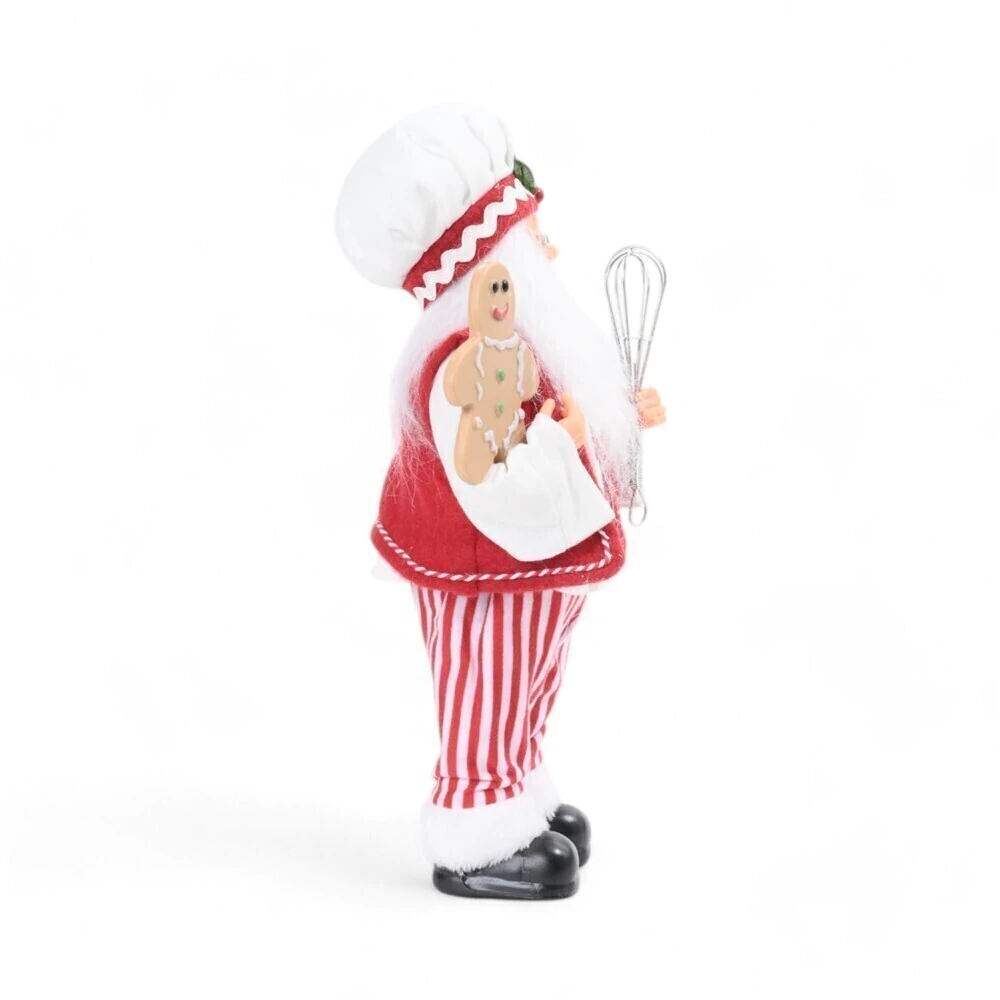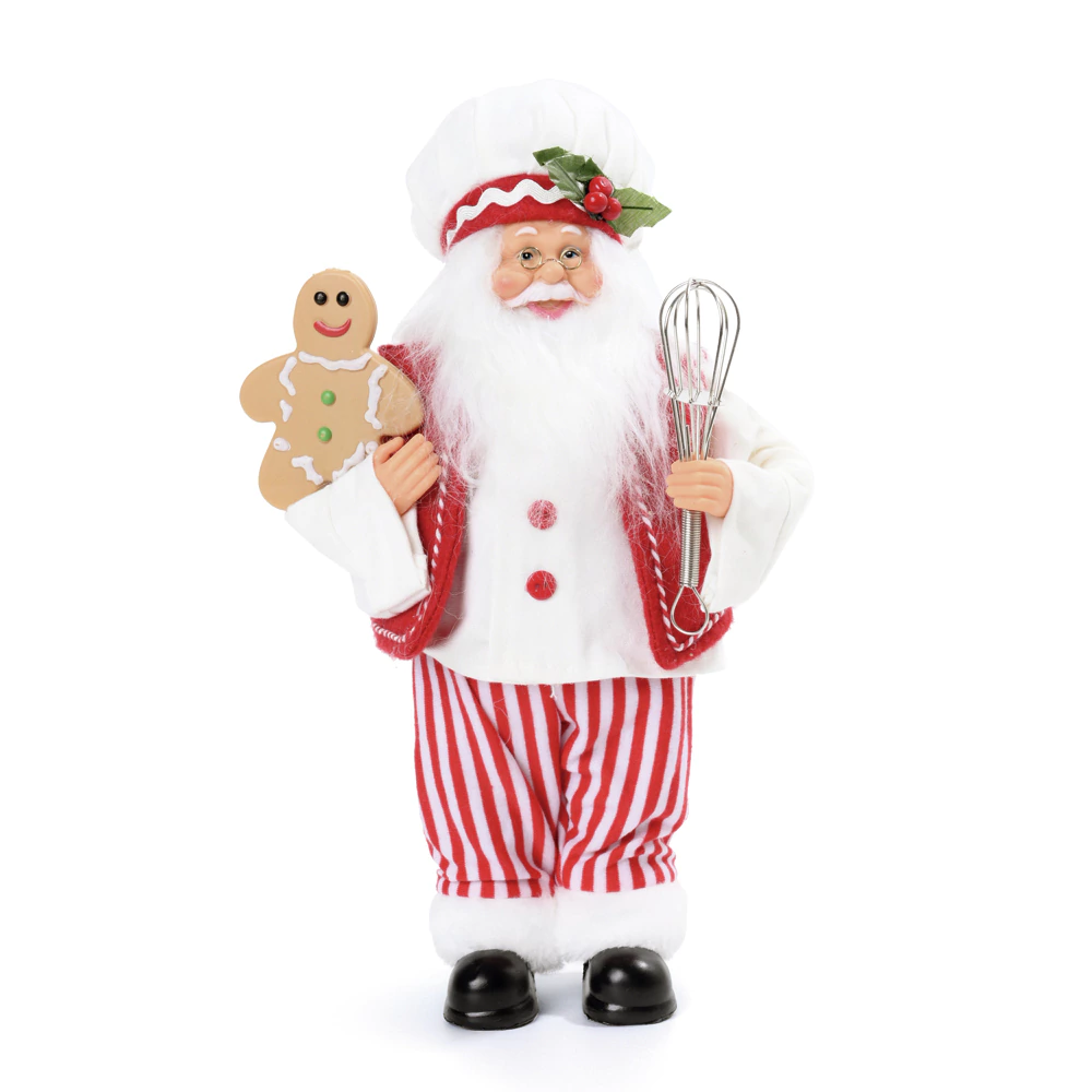 Gingerbread: Em uma das mãos, ele exibe um delicioso boneco de gengibre (Gingerbread Man) em resina, decorado com glacê, o símbolo máximo da doçura natalina.