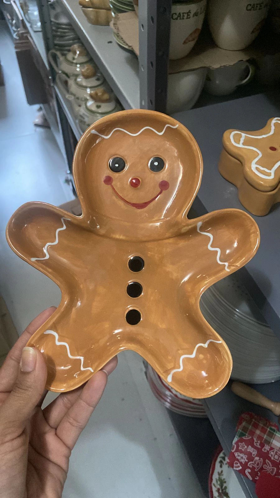 Essa é uma travessa de cerâmica em formato de biscoito de gengibre, perfeita para adicionar um toque de doçura e charme à sua mesa.