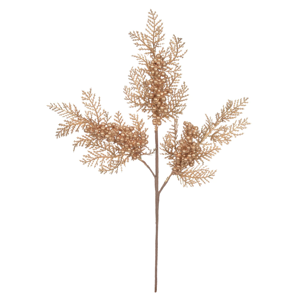Este é um elegante galho (pick) artificial, medindo aproximadamente 42 cm de comprimento, projetado para adicionar volume, brilho e uma textura invernal sofisticada a qualquer arranjo ou decoração natalina.