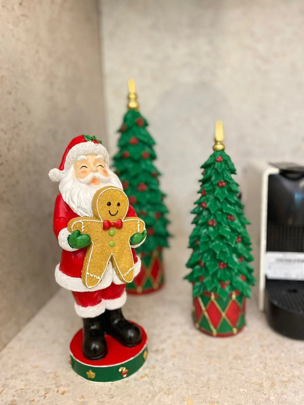 Material: Confeccionada em resina resistente com acabamento detalhado, garantindo que a peça seja durável e mantenha suas cores vibrantes por muitos Natais.