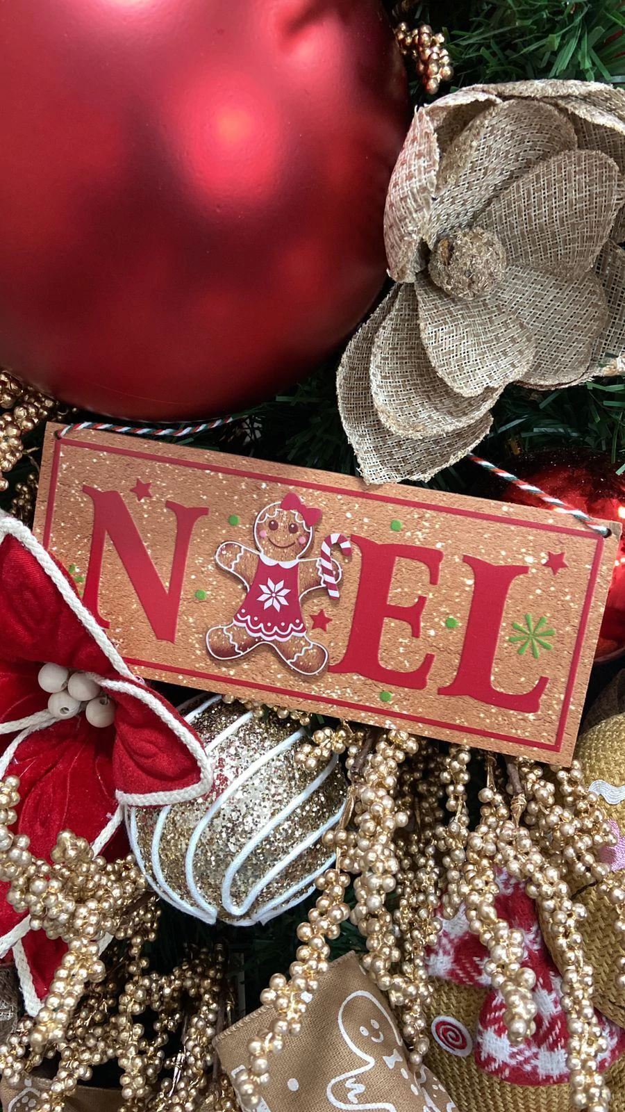 Traga a doçura e o charme artesanal do tema gingerbread para sua porta ou parede com a Placa Decorativa Natal "NOEL" Gingerbread!