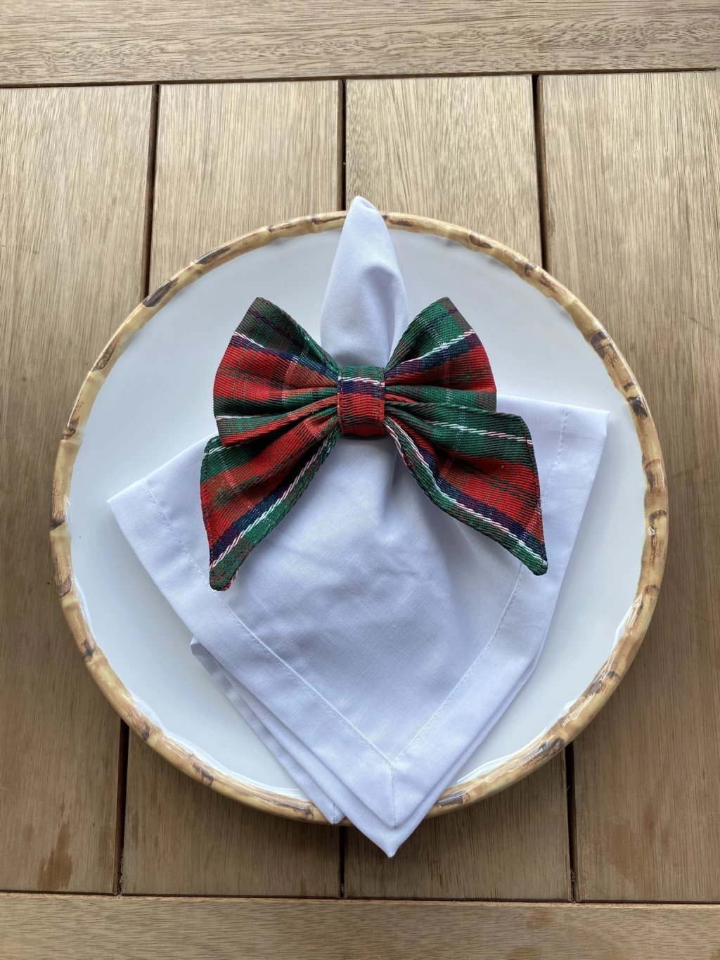 Formato e Estrutura: O laço é volumoso e bem estruturado, com pontas que se projetam elegantemente, garantindo que ele não passe despercebido na mesa.