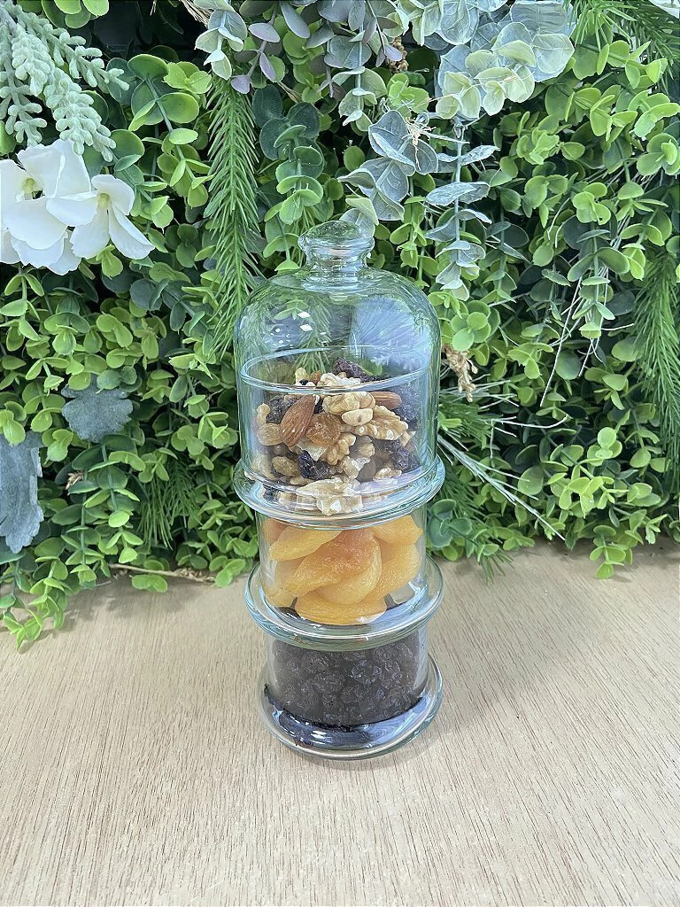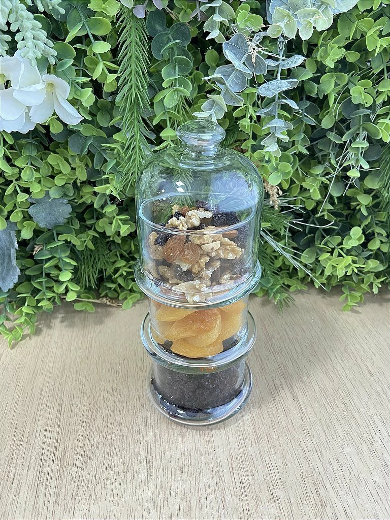Este trio é ideal para armazenar pequenos objetos, como joias, doces, especiarias ou itens de escritório, mantendo-os acessíveis e organizados. Além de sua funcionalidade, o "Trio Empilhável Potiche P" serve como um elemento decorativo charmoso, perfeito para adornar prateleiras, mesas de centro ou bancadas, adicionando um toque de sofisticação e personalidade ao seu espaço. Sua natureza empilhável permite diversas configurações, adaptando-se facilmente ao seu estilo e necessidades.