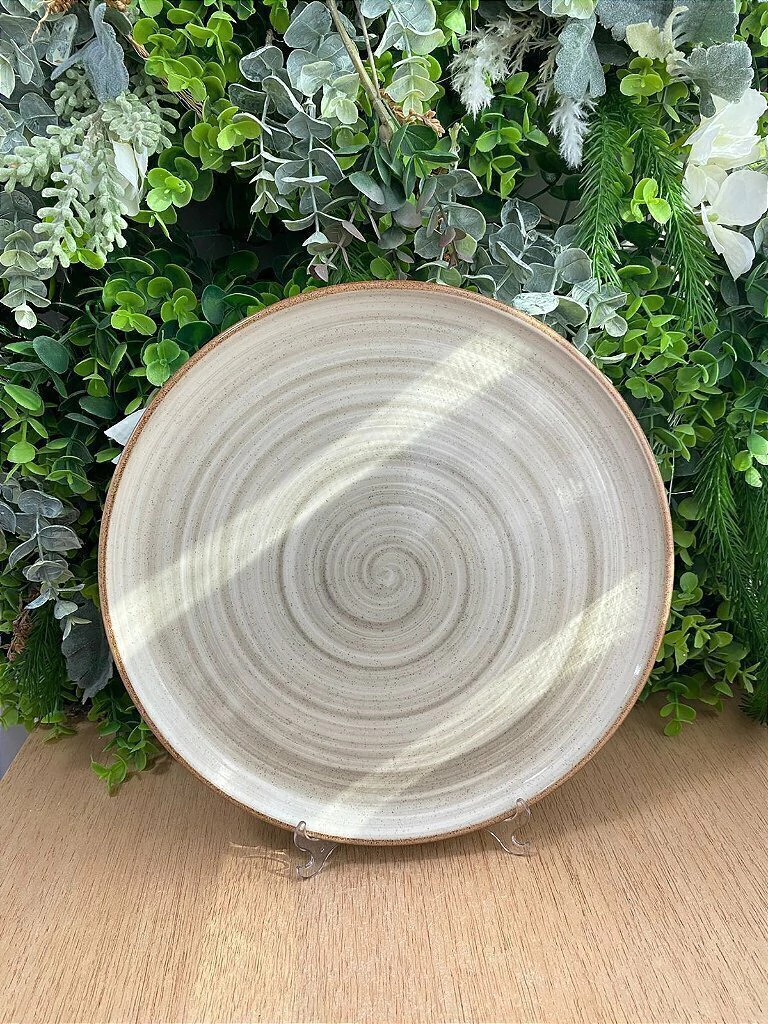 Adicione um toque orgânico e contemporâneo à sua mesa com o Prato Raso Espiral Lunar. Este prato é a escolha perfeita para quem busca combinar a beleza das texturas naturais com um design moderno e funcional.