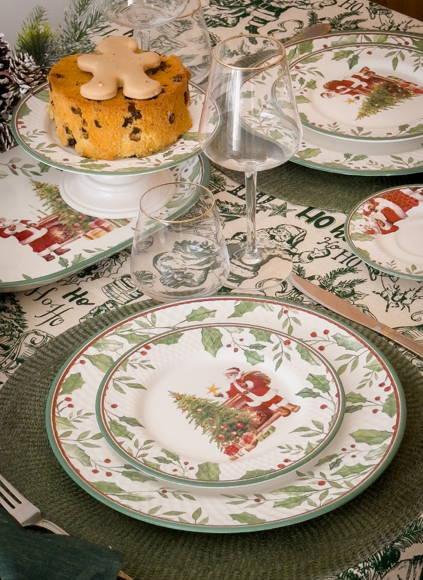 Este prato raso de 29 cm é perfeito para a sua mesa de Natal, apresentando um design festivo e clássico.