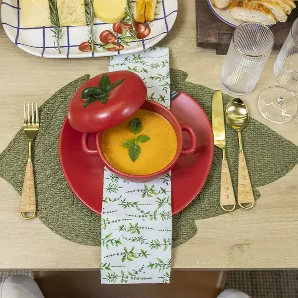 Este prato é perfeito para quem busca adicionar um toque de charme rústico e alegria à mesa, combinando especialmente bem com temas de culinária italiana, mediterrânea ou de "fazenda". Ele funciona como uma peça de destaque em uma mesa posta temática e pode ser facilmente combinado com louças brancas ou verdes sólidas.