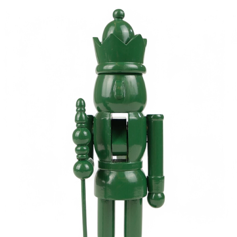 Este é um elegante Quebra-Nozes decorativo de porte médio, perfeito para injetar um toque de realeza e a profundidade do verde clássico na sua decoração natalina.