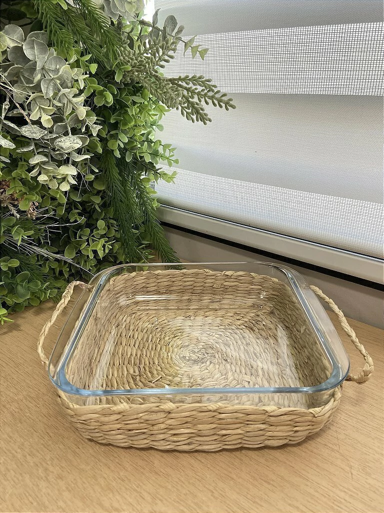 Prático e charmoso, este refratário de sisal médio com alças é perfeito para levar seus preparos diretamente do forno à mesa (verificar a resistência ao calor do material específico). Seu tamanho ideal e alças facilitam o servir, enquanto o material em sisal adiciona um toque acolhedor à sua decoração. Dimensões: 25,5cm de comprimento, 23cm de largura e 5cm de altura.