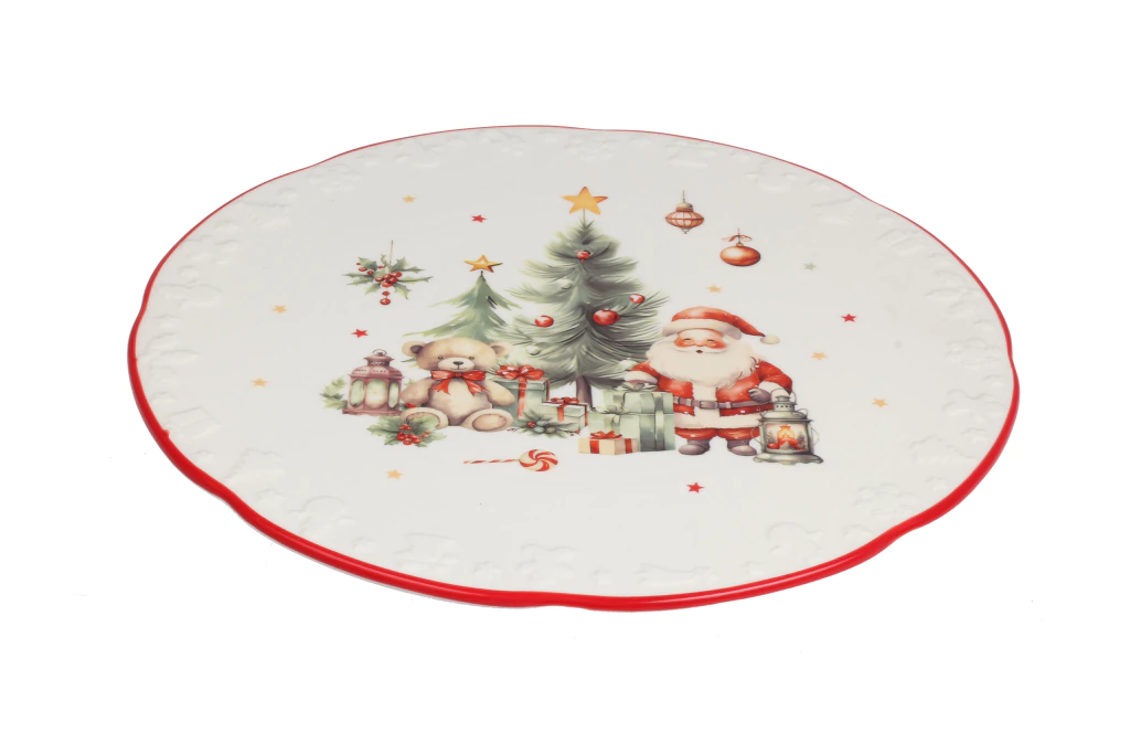 Crie a mesa de Natal dos seus sonhos com esta peça versátil e cheia de charme! Nosso Santa Claus Luxo é ideal para criar uma base elegante para seus pratos principais ou para servir seus petiscos e doces favoritos com estilo.