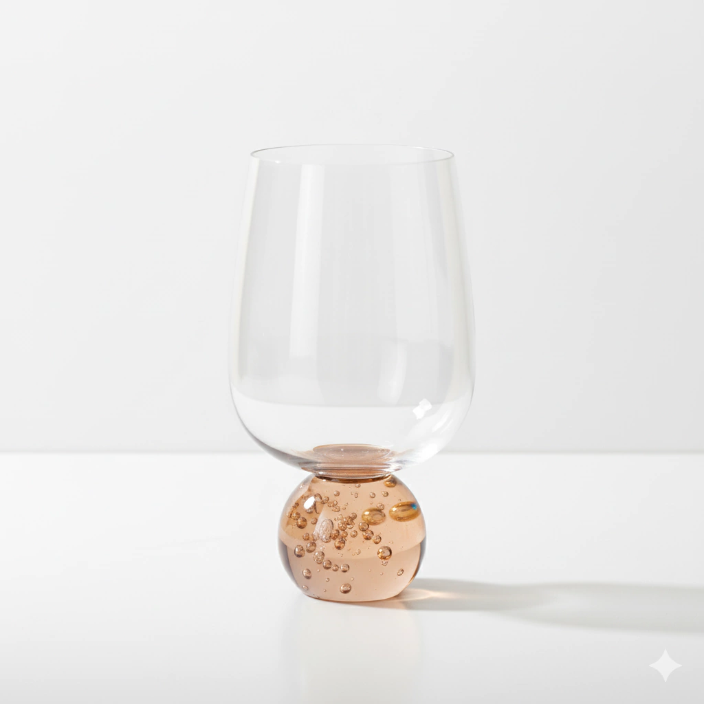 A transparência do corpo da taça permite que o brilho e a cor da sua bebida se destaquem, enquanto a base com efeito "bubble" adiciona uma dimensão visual única e um toque de personalidade. Ideal para servir vinhos, sucos ou coquetéis, esta taça não é apenas um item funcional, mas uma verdadeira declaração de estilo que transformará qualquer ocasião em um momento especial. Perfeita para quem busca exclusividade e beleza na hora de receber.
