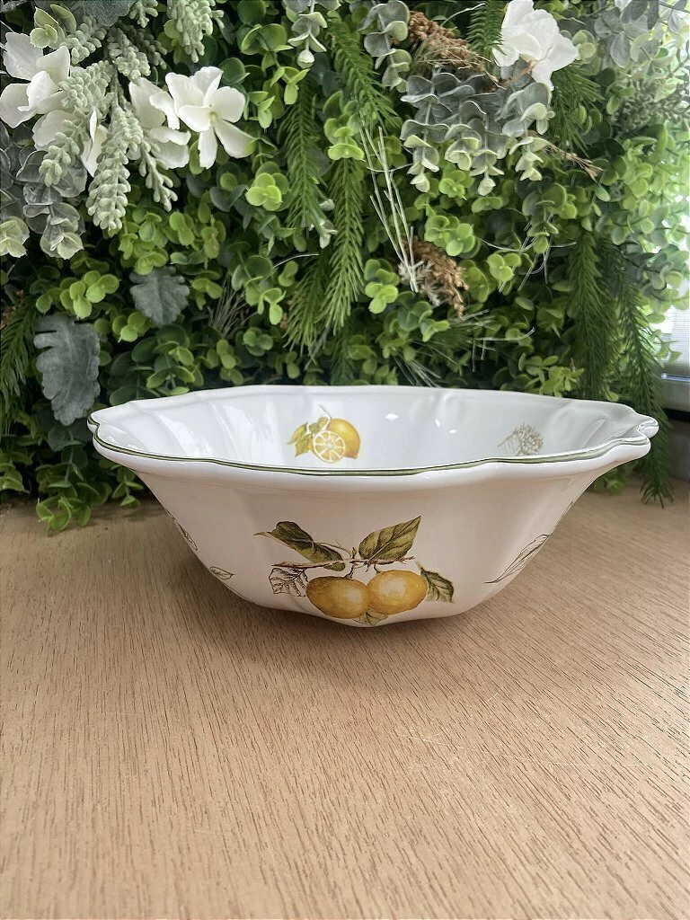 A Tigela Média Limão Sicília Luxo é uma peça de cerâmica elegante e sofisticada, que combina funcionalidade com um design charmoso e vibrante. Com suas dimensões de 20,5x7 cm, é ideal para servir saladas, frutas, petiscos e outras delícias, adicionando um toque de frescor e requinte à sua mesa.