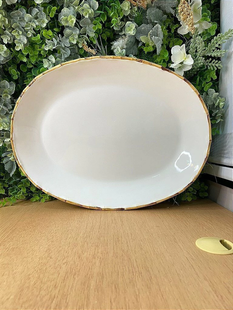 Suas generosas medidas de 5x32cm a tornam ideal para servir grandes porções, desde assados e massas até saladas e petiscos para compartilhar. A cerâmica garante uma superfície fácil de limpar e resistente, enquanto o bambu adiciona um toque orgânico e acolhedor à sua mesa.