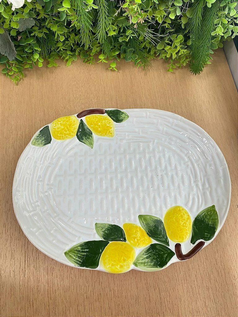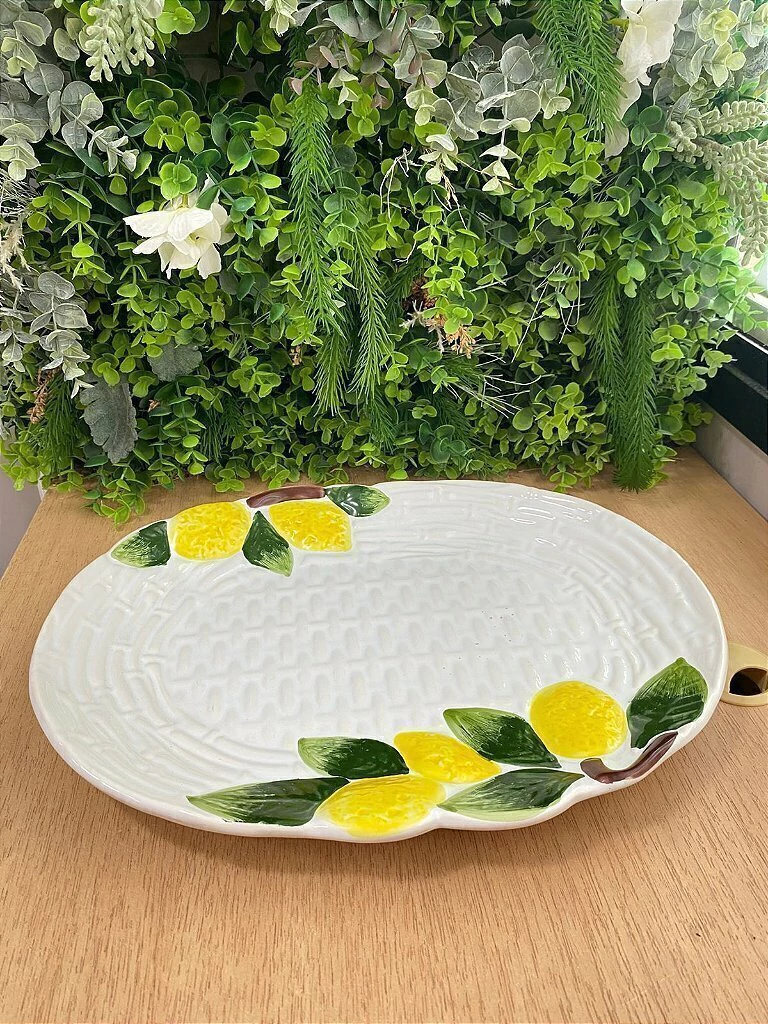 Traga o frescor e a beleza ensolarada dos pomares mediterrâneos para sua mesa com a Travessa Limoeiro em Relevo Pequena. Esta peça encantadora não é apenas um utensílio para servir, mas uma obra de arte que celebra a natureza. Sua superfície é adornada com um delicado padrão em relevo, que cria uma textura convidativa, enquanto os ramos de limões vibrantes e suas folhas verdes emergem em destaque nas bordas, conferindo um charme tridimensional e realista.