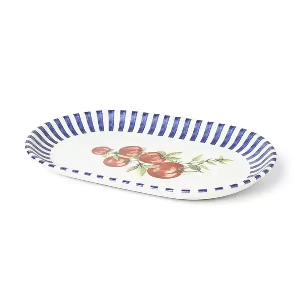 Sirva suas entradas, petiscos, pratos principais ou acompanhamentos com o charme clássico e fresco da Itália com esta belíssima Travessa Oval. Uma peça que combina o rústico da culinária com a elegância do design marítimo.