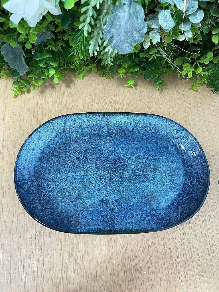 A Travessa em azul marinho evoca a profundidade e a serenidade do oceano. Sua tonalidade rica e sóbria traz um toque de elegância atemporal para qualquer mesa, combinando perfeitamente com louças brancas para um visual clássico ou com tons vibrantes para um contraste moderno. Ideal para servir petiscos, pratos principais ou até mesmo como peça decorativa, esta travessa é um convite à sofisticação.