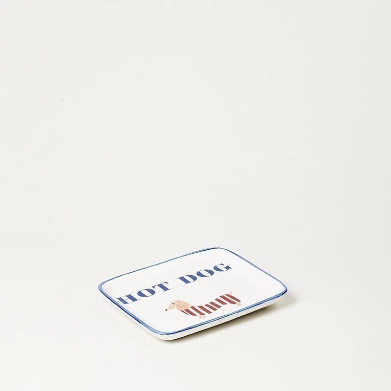 A frase "HOT DOG" e a ilustração do cãozinho dachshund dão um charme especial à peça. É o tamanho perfeito para servir petiscos, pequenas porções de salgados ou sanduíches, tornando qualquer momento à mesa mais descontraído.