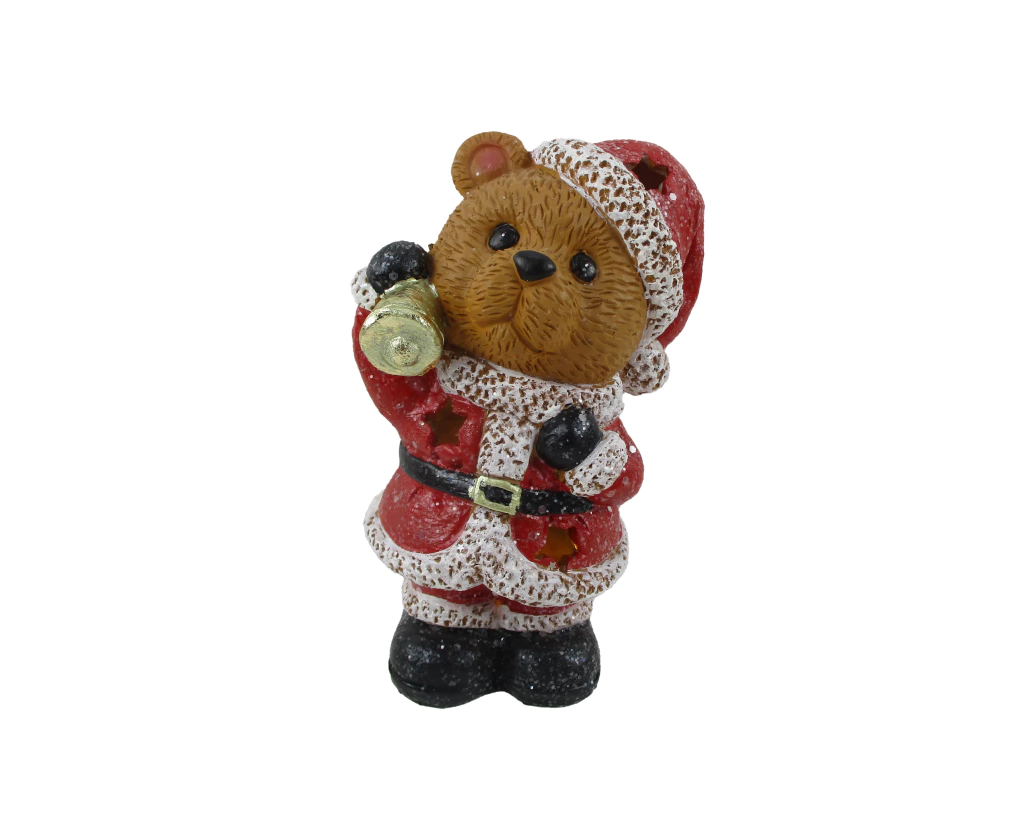 Acessório Símbolo: O destaque da peça é o sino dourado que o ursinho segura, simbolizando a chegada da alegria e o anúncio das Boas Novas da época natalina.
