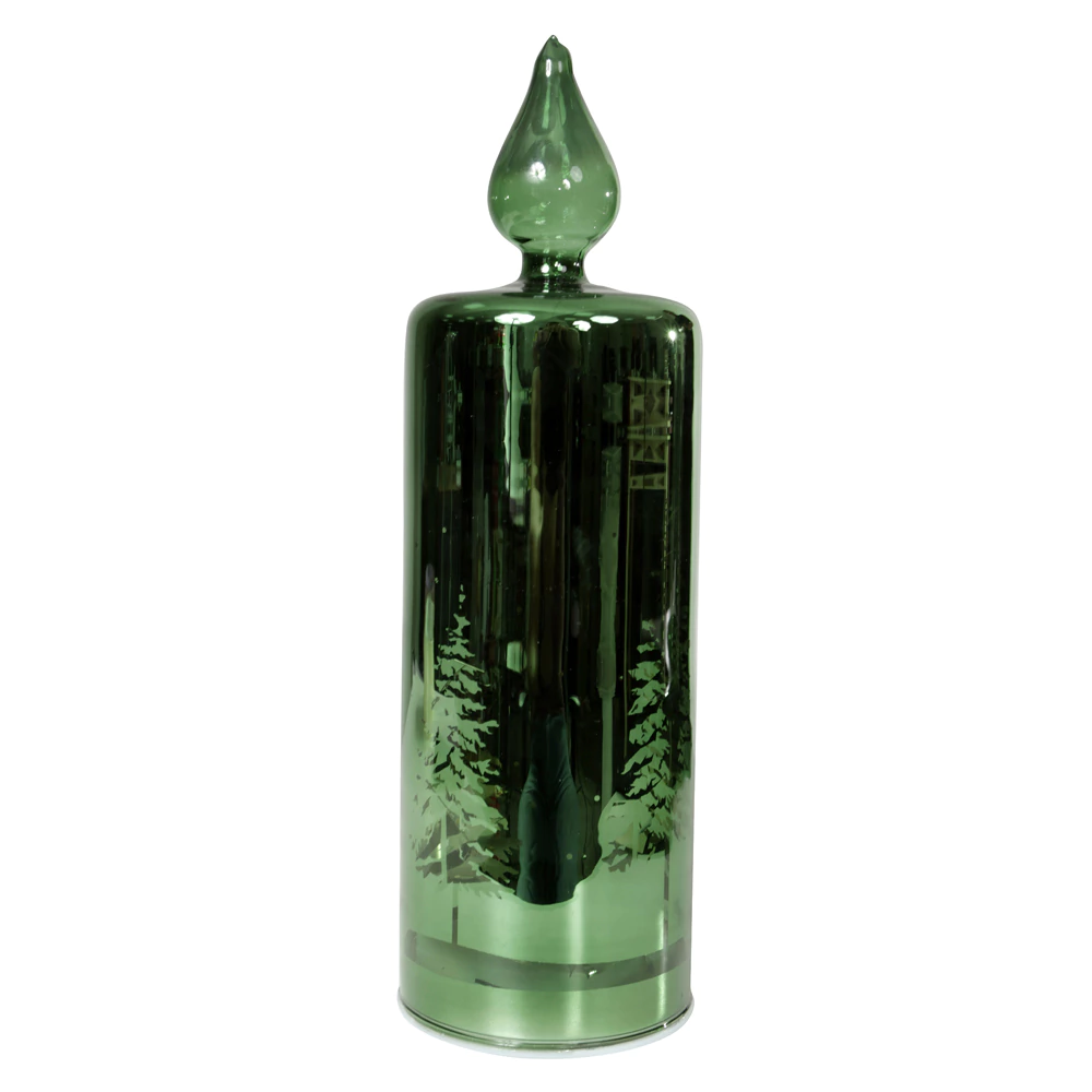Com 26x8cm, essa vela decorativa em vidro verde exibe uma estampa delicada de floresta, que ganha vida com a iluminação LED interna. Perfeita para criar um ambiente aconchegante e festivo, ela traz um brilho sutil e elegante para mesas, prateleiras ou lareiras.