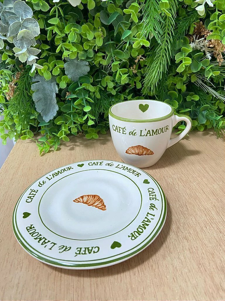 Com um tamanho ideal para sua bebida favorita — seja café, chá ou chocolate quente — este conjunto não é apenas funcional, mas também um item de decoração encantador. Sirva com charme e transforme seus momentos de degustação em uma experiência verdadeiramente especial com a Xícara com Pires Croissant Café De L´Amour.