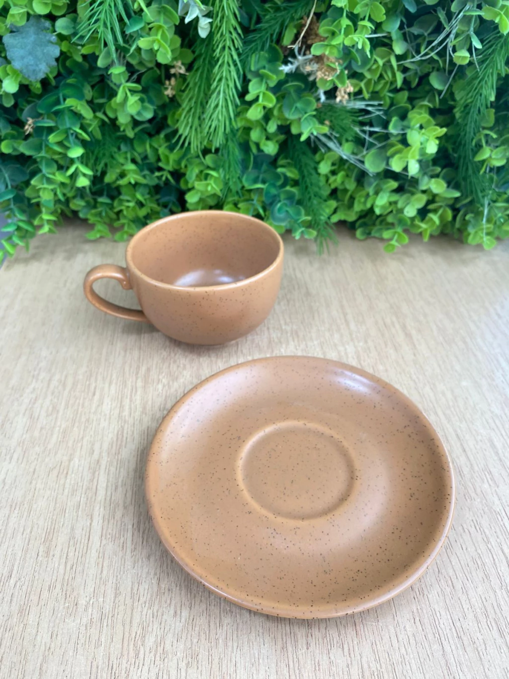 Com um charme rústico e uma elegância sutil, esta xícara com pires terracota é a escolha ideal para quem busca uma experiência de café ou chá que é ao mesmo tempo acolhedora e sofisticada. A tonalidade quente e natural, inspirada nas cores da terra, cria uma sensação de calma e aconchego, convidando a um momento de pausa e apreciação.