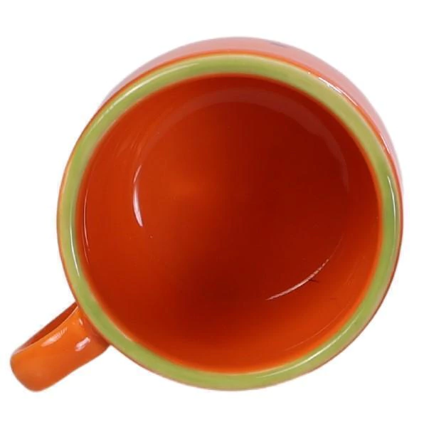 Design Fiel e Vibrante: A xícara é revestida em um esmalte laranja intenso e brilhante, que remete à cor vibrante da polpa do mamão.